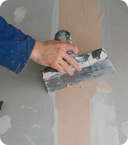 Stud framing coordination, board hanging, fire-rated assemblies (per plan), moisture-resistant board for baths/kitchens, sound-attenuating systems, soffits/bulkheads, and detailed patch/repair.