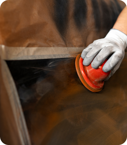 We use controlled sanding, plastic containment where needed, and daily cleanup to protect adjacent areas and HVAC.