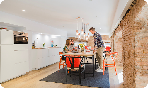 Moisture-resistant board, soffits, and smooth transitions to original plaster.